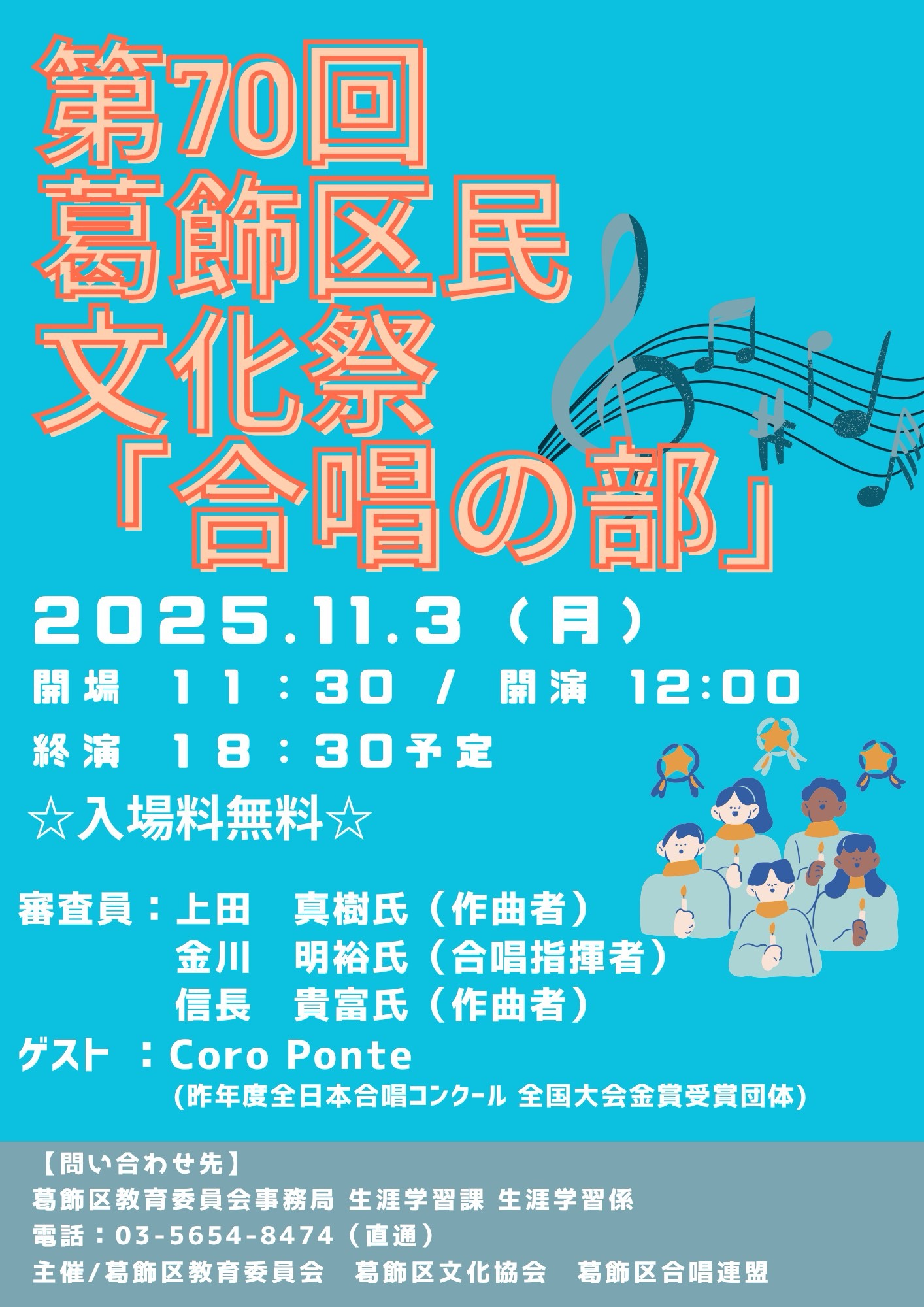 令和7年11月3日開催された第70回区民文化祭合唱の部に参加しました